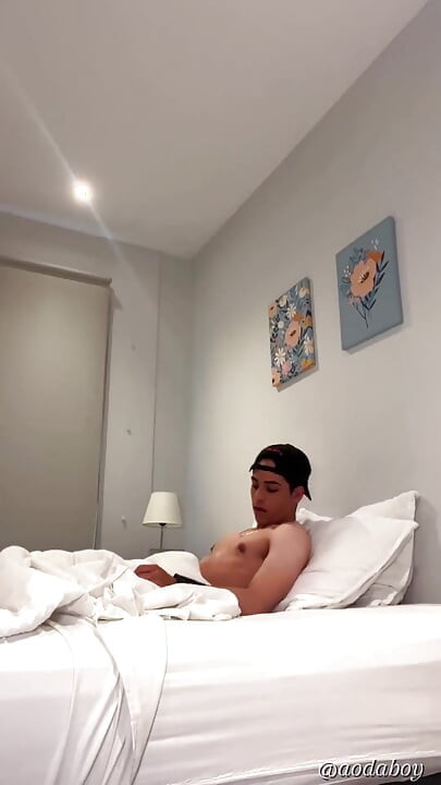 I wake up and I'm horny. I show you my big muscles, I'm wearing a thong and a cap. You admire my muscles, you like them and they excite you just as much as they excite me. I spread my ass so you can see it and I touch my cock. I'm so horny that I masturbate and cum and put it on my nipples.